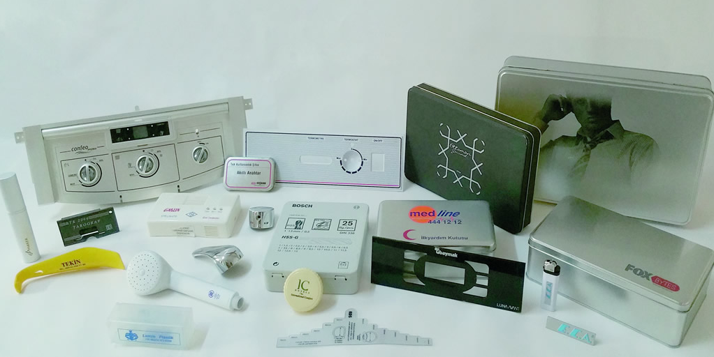 Ürün, parça, yarımamül üzerine baskı / ABS, PP, PVC, PE, PET, Asetat gibi her türlü Plastik üzerine baskı / Metal, Alüminyum, Cam, Porselen, Ahşap, Deri vb. üzerine baskı / Plastik özellikli / Alüminyum özellikli ve Metalize etiketler / Çift yönlü veya ters baskılı opak, şeffaf etiketler / Metal ve alüminyum etiketler / Promosyon ürünlerinin baskıları (kalem, çakmak, saat , ajanda, seramikler, kupa, fincan vs.) üzerine baskı / Kağıdın yanı sıra cam, porselen, tahta, plastik türleri, deri, metal alaşımlı maddeler ve daha bir çok materyal üzerine baskı / Promosyon ürünlerinin baskıları / Reklam çıkartma ve etiketleri / PVC, metalize etiketler / Asetat, Polistren, Emaye, üzerine baskılar / Beyaz eşya ürün etiketleri / Elektronik cihaz ürün etiketleri / Pişirici ve ısıtıcı ürün etiketleri / Bisiklet, motorsiklet, dikiş makinaları vb. ürün etiketleri / Ağır sanayi makinalarında kullanılan metal, alüminyum ve her türlü etiketler / Asite karşı dayanıklı akü çıkartma etiketleri / Kozmetik ve gıda sektör etiketleri / Boya, kimyevi sektör etiket ve kartelalar / Yüksek mikron alüminyum etiketler /Mıknatıslı etiketler